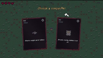 A clean hack n slay. The companions are nice, the level-up is very frequent at the beginning and a few more enemies would have been nice. I got to level 19, I liked it even though it's not my genre :3 I'm impressed with how big your jam team was. And very nice Itch page!